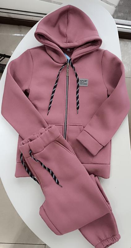 Теплый костюм на плотном флисе для девочки Застегивается на молнию Шнурок на поясе брюк функциональный