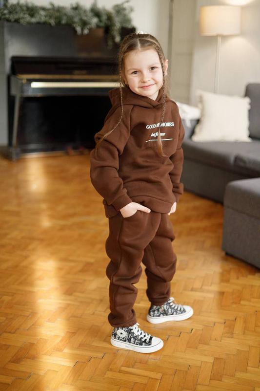 Костюм детский унисекс Ткань: ТУРЧЕЧКА трехнить на флисе, высокого качества. Хороший накат. Размеры: 86/92; 98/104; 110/116; 122/128 Цвета: черный, шоколад, беж, серый меланж. Цена: 1050 грн Замеры: Размер 86/92 Ог 68 см, рукав 43 см, спинка 36 см. От 44-60 см, об 64 см, довжина 52/32 см. Размер 98/104 Ог 76 см, рукав 50 см, спинка 40 см. От 48-64 см, об 68 см, довжина 58/38 см. Размер 110/116 Ог 82 см, рукав 53 см, спинка 44 см. От 54-72 см, об 74 см, довжина 68/44 см. Размер 122/128 Ог 86 см, рукав 60 см, спинка 50 см. От 58-76 см, об 78 см, довжина 78/54 см.