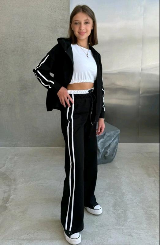 Стильный костюм тройка Худи на замочке + штаны палаццо+топ Тканина двухнитка пенье діагональ КАЧЕСТВО ЧУДОВА 🥰возраст худи длин/пог/ рукав от горловины/топ длин/пог/ брюки длин/шаг/пояс 128-134р-47/48/55/30/33/80/60/25 140-146р-49/49/59/30/36/88/65/28 +-2 см