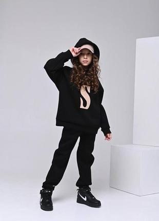 Подростковый костюм №2420 Ткань - турецкая хб трехнить пенье с плотным начесом (очень тёплый) высокого качества не линяет, не скатывается, красиво держит форму. Высокого качества пошива. Слад: 85% хлопок, 10% вискоза, 5% эластан Штани джогери. Цвет- Размеры: Черный: 164-170 Розовый: 152-158,158-164,164-170 Невероятной изысканности костюма добавляет аппликация из буквы.