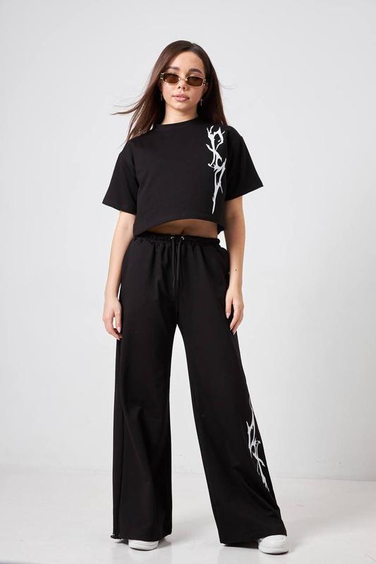 Костюм с супер модным принтом качество двухнитка пенье Турция Брюки широкие Багги с утяжкой по низу Футболка мае принт по переду і по заду Супер качество Цена 1115 грн Рост полномерные 140-146 146-152 152-158 158-164 164-170 ▪️N-15