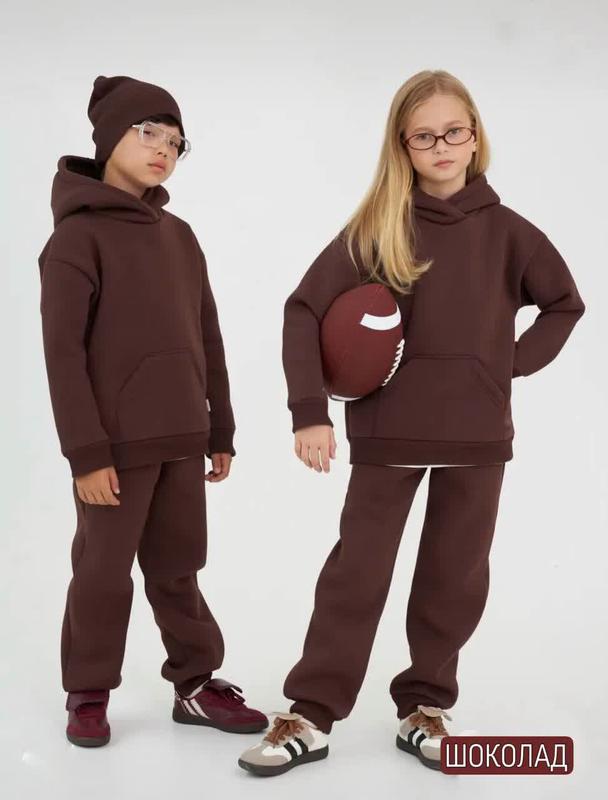 Стильный и удобный детский костюм теплый на флисе. Свободный крой худи со спущенной линией плеча, есть накладной карман, манжеты на рукавах из ткани изделия. Низ изделия на манжете. Брюки удобной высокой посадки, имеют два боковых кармана, низ на манжете в цвет ткани. Ткань: трехнить флис 128- 134 Худи / длина 58 см/ рукав 38 см/ полуобхват ком 45 см Брюки / длина 84 см / полуобхват бедер 41 см / 140-146 Худи / длина 59 см/ рукав 40 см/ полуобхват ком 47 см Брюки / длина 88 см / полуобхват бедер 43 см / 146-152 Худи / длина 60 см/ рукав 41 см/ полуобхват ком 49 см Брюки / длина 92 см / полуобхват бедер 45 см /