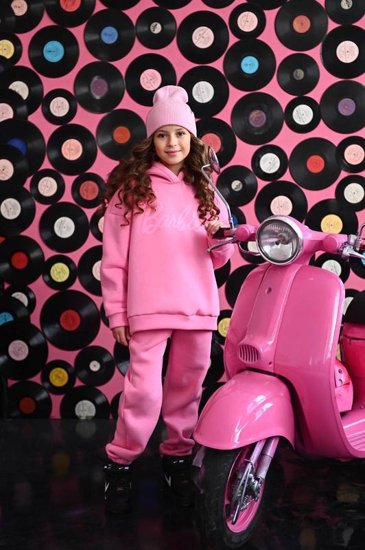 Ткань - турецкая хб трехнить пенье с плотным начесом (очень тёплый) высокого качества не линяет, не скатывается, красиво держит форму. Высокого качества пошива. Слад: 85% хлопок, 10% вискоза, 5% эластан Штани джогери. Размеры: 152-158,158-164,164-170 Цвет-розовый Невероятной изысканности костюма добавляет аппликация из буквы.