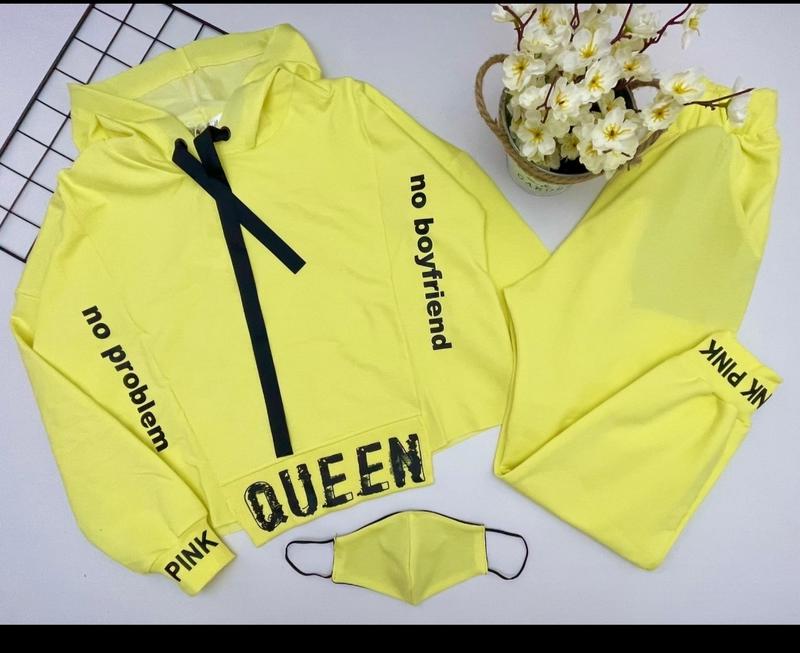 Невероятно крутой костюм “QUEEN”. с крутым принтом 👑ткань двунитка 👑штаны в поясе на резинке есть карманы 👑маска в комплекте ОТЛИЧНОГО КАЧЕСТВА! Размер/👑длина/ширина/рукав от горловины/👑дл.штанов/шаг/пот 134-140/👑48/55/63/👑85/55/25-1шт 146/👑50/56/64/👑86/57/27-1шт 152/👑53/56/64/👑90/60/29-1шт 158/👑54/57/66/👑94/64/32-1шт 164/👑57/57/68/👑97/65/33-1шт