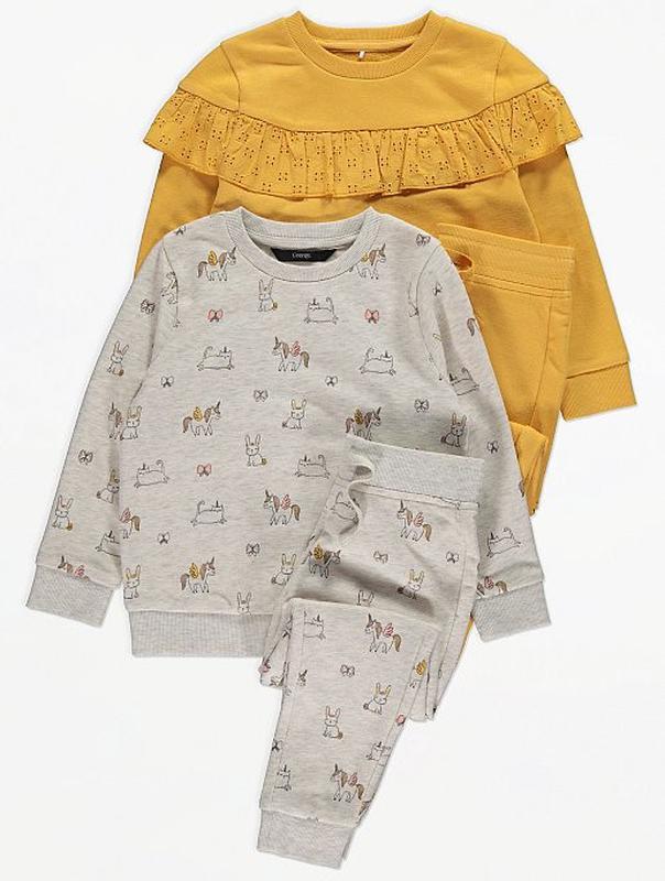 Спортивный костюм для девочки/французский трикотаж GEORGE на 2-3 года на р.92/98. Состав ткани: 80% хлопок, 20% полиэстер. В наличии - 1 шт. (желтый). Цена за 1 костюм. Верх. длина - 38 см, полуобхват под мышками - 32 см, длина рукава - 34 см, длина плеча - 5 см. Брюки. длина - 57 см, шаговая длина - 36 см, ПОТ - 26 см.