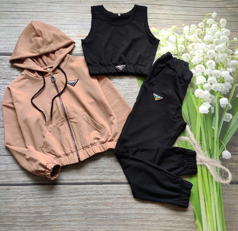 Модный спортивный костюм на девочку ткань двунить пенье, отличого качества РЕКОМЕНДУЮ!!! 140(4 шт)-кофта длина 45,рукав от горловины 60,пог 43,штаны длина 78,шаг 55,длина топа 35,пог34 146(5 шт)-кофта длина 46,рукав от горловины 62,пог 44,штаны длина 82,шаг 61,длина топа 37,пог36 152(4 шт)-кофта длина 47,рукав от горловины 65,пог 45,штаны длина 89,шаг63,длина топа 38,пог38 158(5 шт)-кофта длина 50,рукав от горловины 67,пог 48,штаны длина 93,шаг68,длина топа 39,пог30
