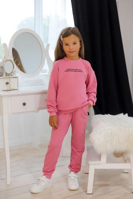 Базовый спортивный костюм для девочек из двухниточного футера. Модель состоит из свитшота свободного покроя, с длинными рукавами на манжетах, воротником-стойкой из эластичного материала, а так же брюк с боковыми карманами, на манжетах, с притачным поясом. По переду свитшота стильная надпись контрастного цвета, выполненная методом шелкотрафаретной печати. Костюм выполнен в актуальных в этом сезоне цветах, подходит для прогулок, занятий спортом, активного отдыха. Рекомендуется дополнить образ модными кроссовками, кедами. Полотно хорошего качества, при правильном уходе не даёт усадку, не линяет, не скатывается. Полотно: двухниточный футер Состав: 80% хлопок, 17% полиестер, 3% эластан Рекомендации по уходу: стирать при температуре не более 30°C, принт утюжить только по изнанке.