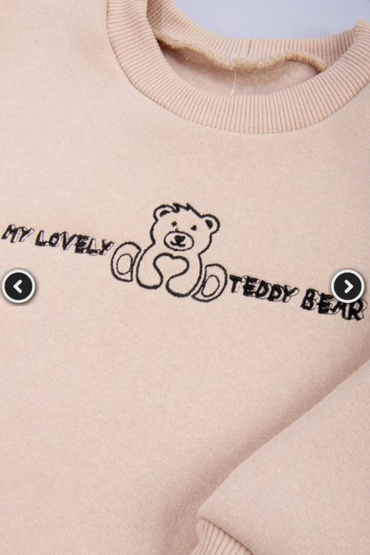 Костюм состоит из свитшота и брюк, выполнен из плотного трехниточного футера. Свитшот свободного кроя, с округлой горловиной, слегка приспущенным плечом, с лаконичной вышивкой. Брюки с карманами, для удобства в пояс вставлен шнурок. Модель представлена в двух цветах, актуальных в этом сезоне. Полотно теплое, с высоким содержанием хлопка, после стирки может дать незначительную усадку. Полотно: трёхниточный футер с начесом. Состав: 70% хлопок, 30% полиэстер. Рекомендации по уходу: стирать при температуре не более 30°C, вышивку утюжить по изнанке,допускается стирка в режиме «ручная» или «деликатная». Рост модели :118 см. Свитшот Рост 98 Рост 104 Рост 110 Рост 116 Рост 122 Рост 128 Допуск Длина изделия 45 47 49 51 53 54 ±2 Ширина изделия по груди 34 35 36 37 38 39 ±1 Длина рукава от горловины 36 38 41 43 45 47 ±2 Брюки Длина изделия 60 63 68 71 75 79 ±2 Длина шага 42 46 49 53 56 58 ±2 Ширина по бедрам 33 34 35 36 37 38 ±1 Ширина по талии 22 23 23 24 24 25 ±1