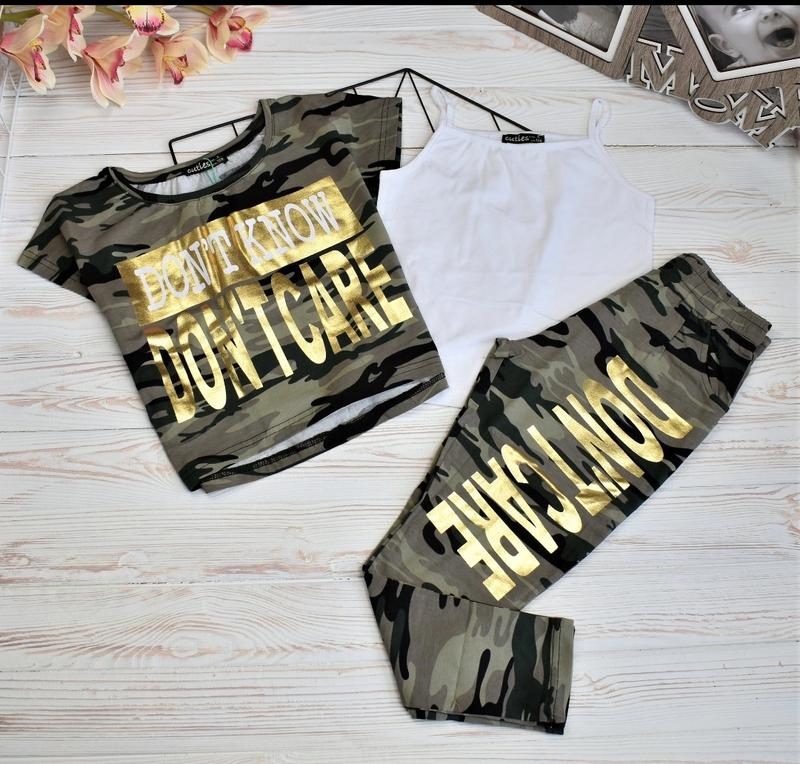 пр-во Турция ✅ткань: коттон ✅костюм тройка, топ, майка и укороченные штаны с карманами ✅замеры: топ:длинна/ширина м-ка: длинна с брителями/ширина штаны: длинна/шаг/бедра 128--т.37/37 м-ка 37/31 шт.71/50/37