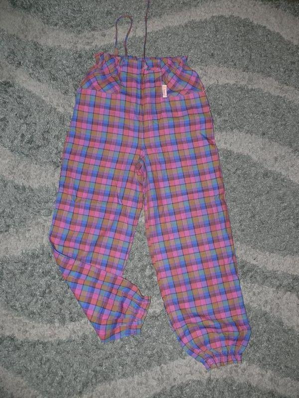 классные коттоновые штанишки на девочку легкие, яркие длина 80см, внутр.шов 56см, пояс на резинке 25см, ПОБ 41см