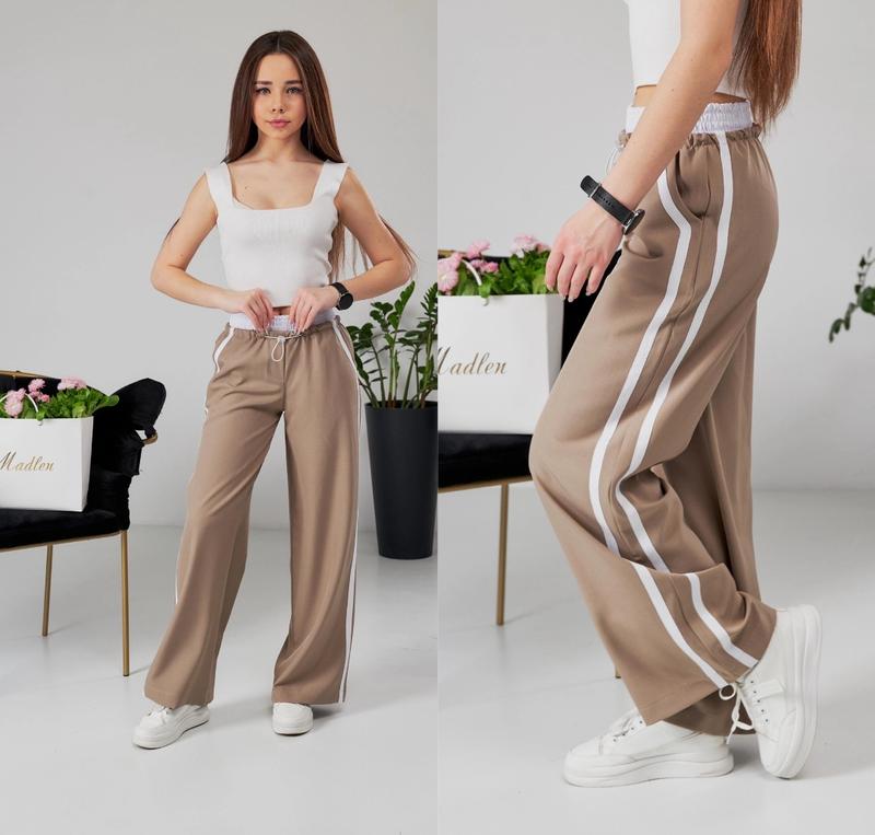 Арт 4857 Трендовые брюки Весеннее-летнего сезона со вставным поясом В поясе есть утяжка и боковыми полосками С карманами Тканина-Бостон Качество супер Рост/длина/шак/пот/поб похибка+-2см 140-146/83/62/23/42-2шт 164-170/98/73/27/47-1шт Тан