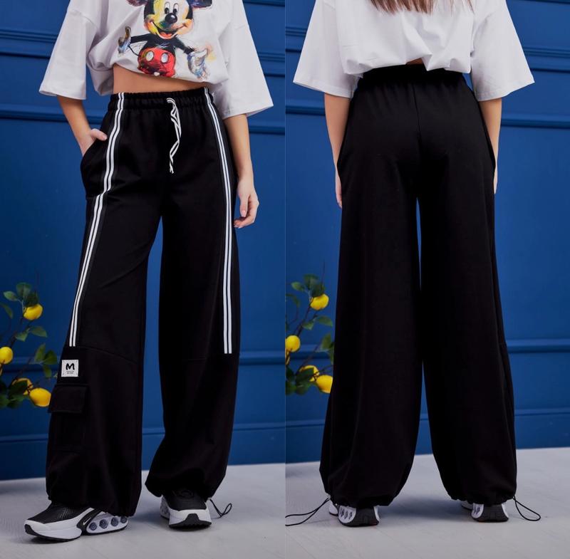 Арт 6222 Палаццо "Багги" По низу стяжка накладной кармашек и ленты по ножке. есть карманы Ткань турецкая двухнитка пенье. Супер качество рост/длина/шак/пот/пос похибка+-2см 140-146/89/60/25/43-1шт 146-152/92/63/26/45-1шт 158-164/99/69/29/49-1шт 164-170/102/73/31/50-1шт Тан