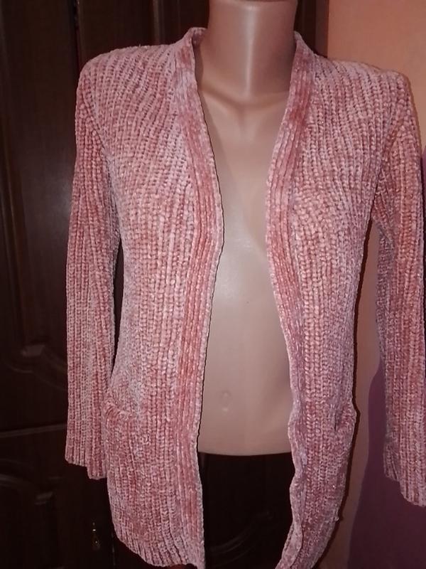Светровий кардиган у хорошому стані без дефектів,м'який приємний до тіла із блискучою,люрексовою ниткою.На зріст 152-158см. Довжина 63см Довжина рукава 56см, внутрішній шов 45см