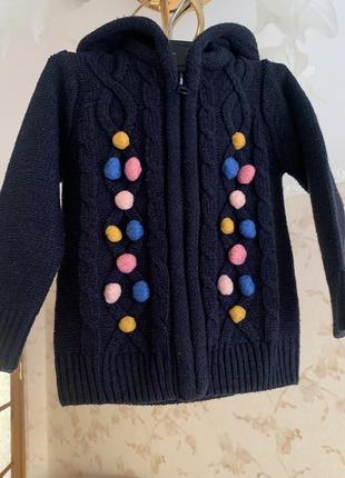 Светер для дівчинки теплий та зручний, на замок з капюшоном, lupilu, 86-92 см, 12-24 місяці Довжина светрика 37 см, напівобхват 29 см, довжина рукава від капюшона 37,5 см