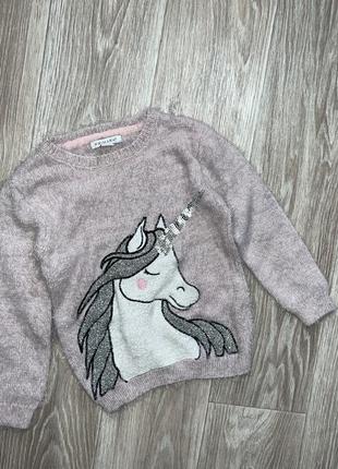 Джемпер травка с единорогом Состояние отличное без дефектов 🏷Primark 6-7 лет маломерка, будет с 4-х. Длина 42. ПОГ 31. Рукав 36