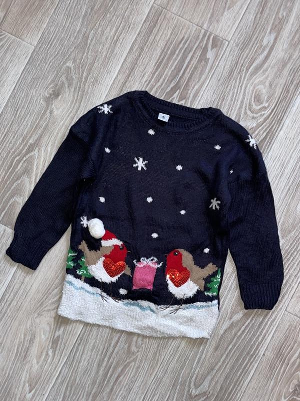 удлинённый свитерок с мигающим,музыкальным подарком. 4 года TU длина 45. ПОГ 33. рукав от шеи 43(23)