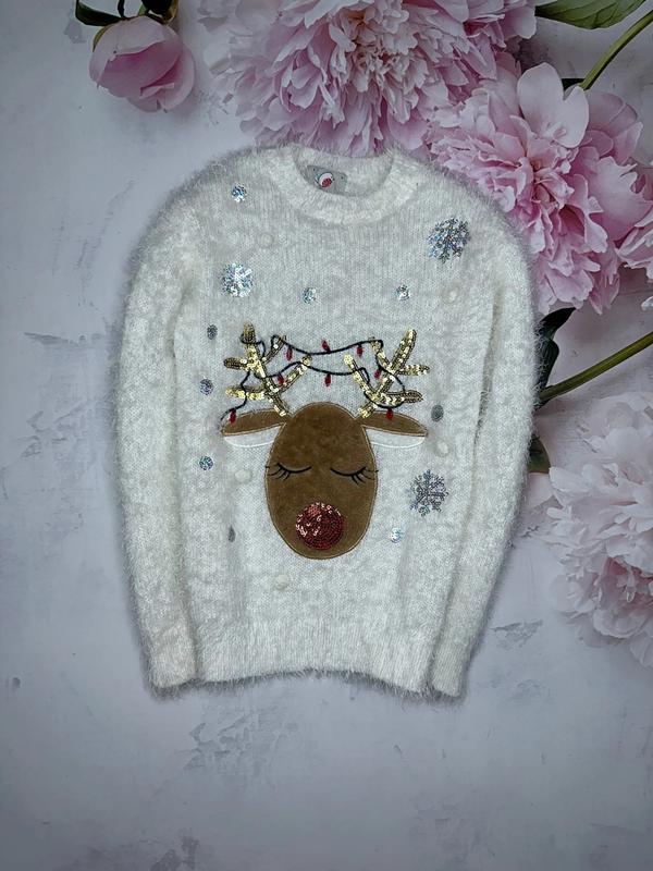 Новогодний джемпер с оленем. Состояние идеал 🏷George ♦️4-5 лет Длина 39. ПОГ 33. Рукав 40 ♦️7-8 лет Длина 50. ПОГ 38. Рукав 47