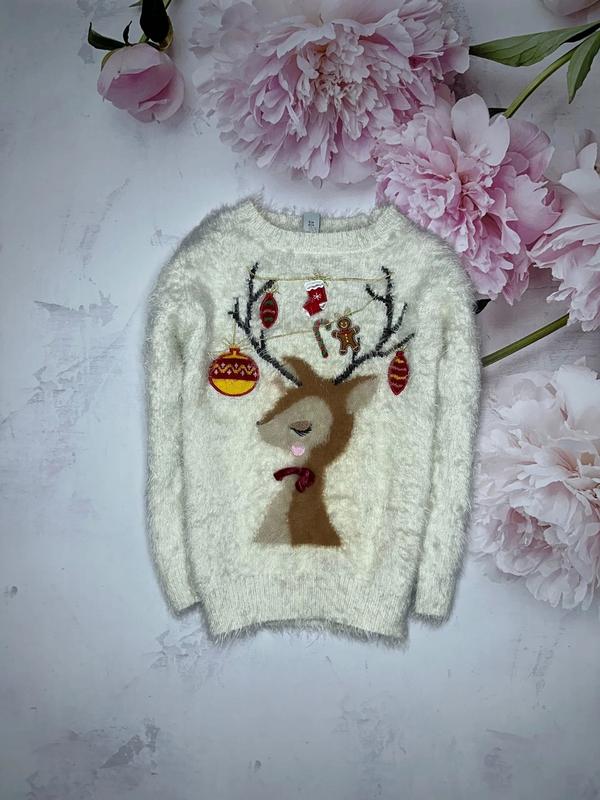 Плюшевый джемпер травка с новогодним мотивом. Красно-желтая игрушка Музыкальная и светится. Свитерок мягкий и приятный к телу. 9 лет TU Длина 49. ПОГ 39. Рукав 44.
