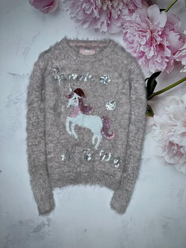 Свитер травка с единорогом Состояние идеальное 🏷️Primark 10-11 лет Длина 50. ПОГ 42. Рукав 55