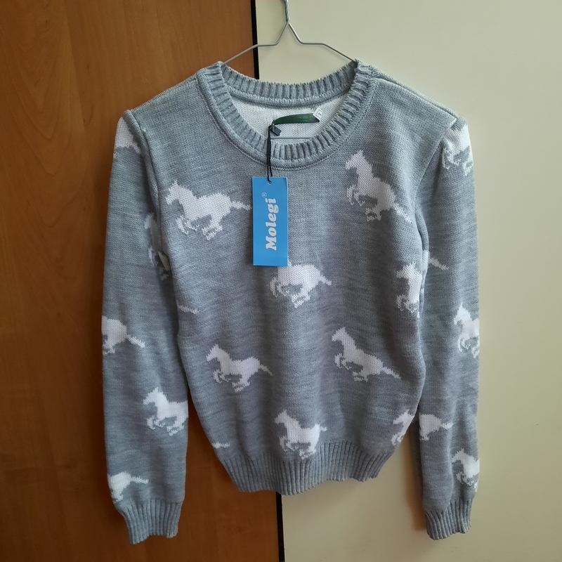 Cветр з конячками сірого кольору новий, підійде на підлітка або худеньку дівчиннку плечі 35см ДР 58 см пог 38см довжина 54см.