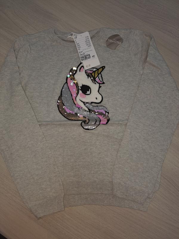 Джемпер H&M,крашен аппликацией из пайеток. 100%бавовна. Размеры: 4-6р-110-116см 8-10р-134-140см. 39/41/34/48 46/49/39/60