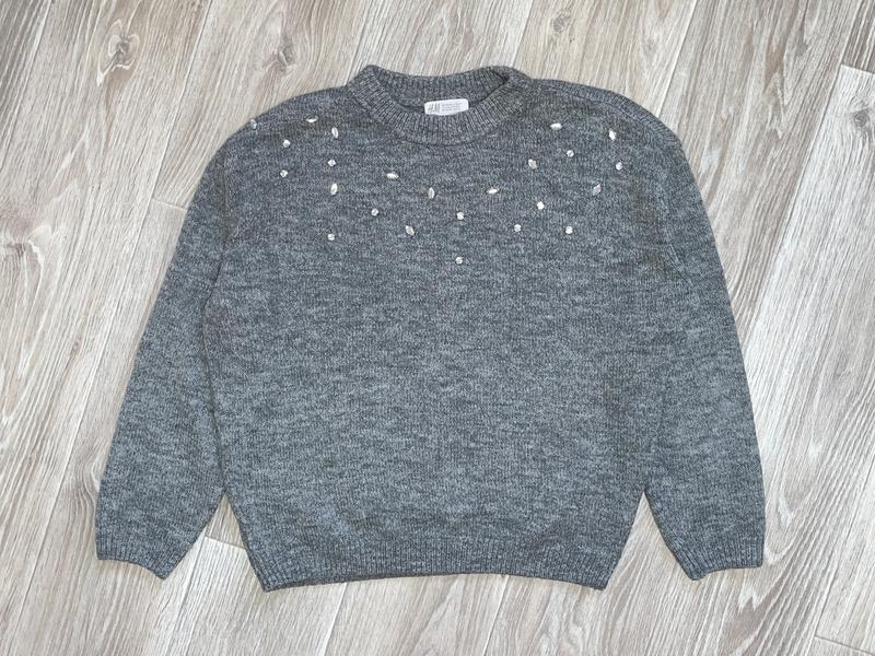 В'язаний светр із камінчиками Нитка з додаванням вовни Стан ідеальний 🏷️h&m 10-12 лет/146-152 Довжина 55. ПОГ 53. Рукав від шиї 66
