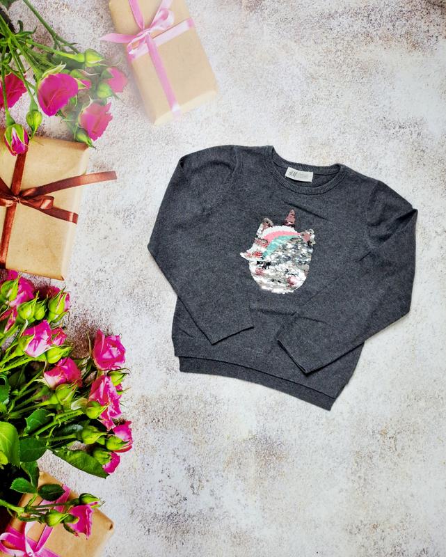 Красивый бежевый свитерик с бабочкой от HM на 4-6 года Стан идеальное,паетки - переворачивающиеся Шир 35 Дов.40 Рукав 45 см