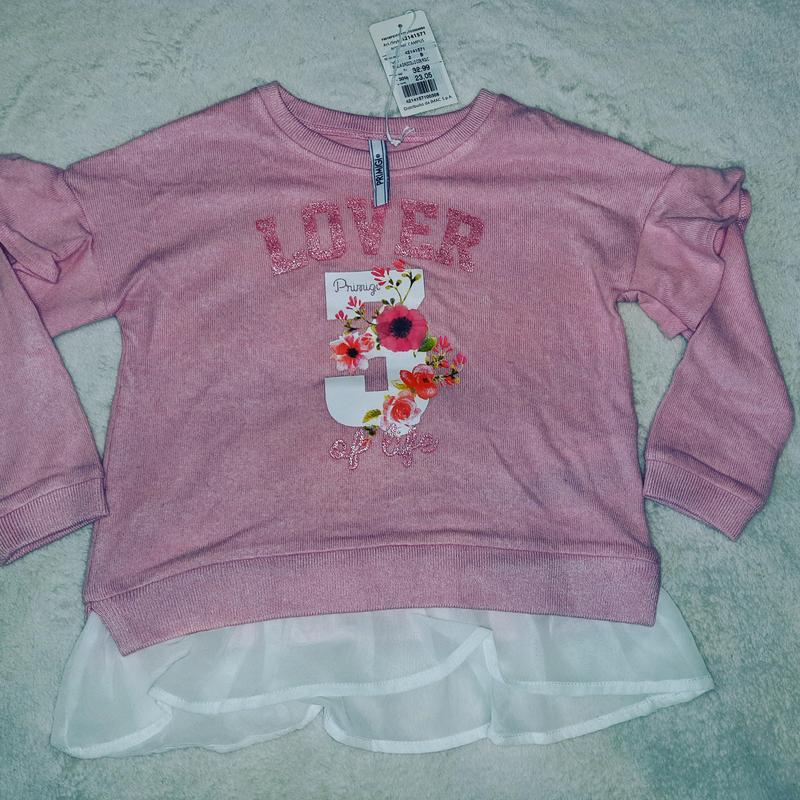 Какой он классный😍Легкий свитшотик, на рукавах - воланчики, внизу белый шифончик придает нарядности любому образу) Размер ❤️2 (92 см) ‼️Замеры!!️ 💙Длина от плеча до белого - 35 см 💛Рукав от ворота - 38 см Итальянский бренд - Prigmi, качество 😍🔥😍