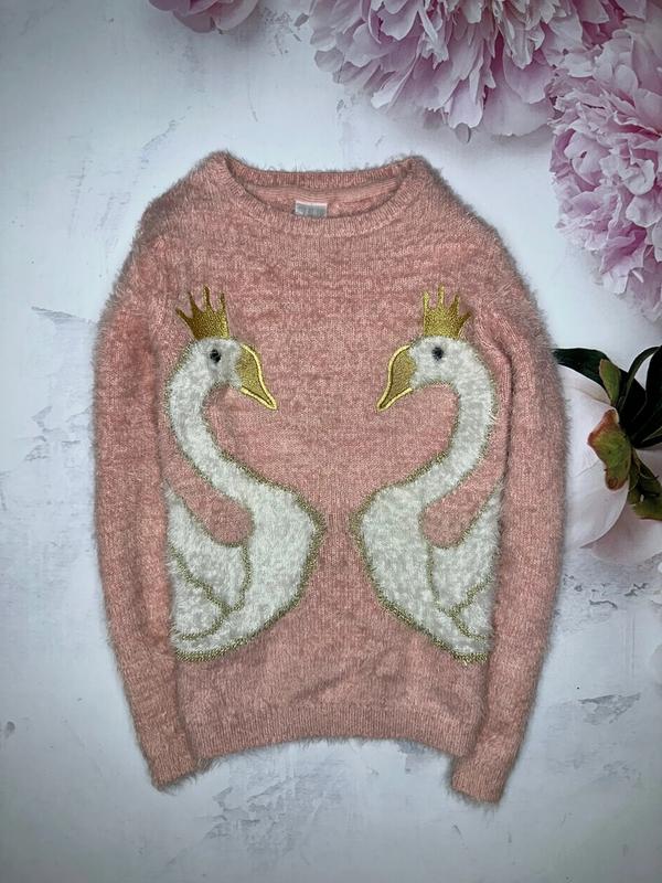 Светр травичка з лебідами Стан ідеальний 🏷️Palomino 9 лет/134 Довжина 45. ПОГ 35. Рукав 46