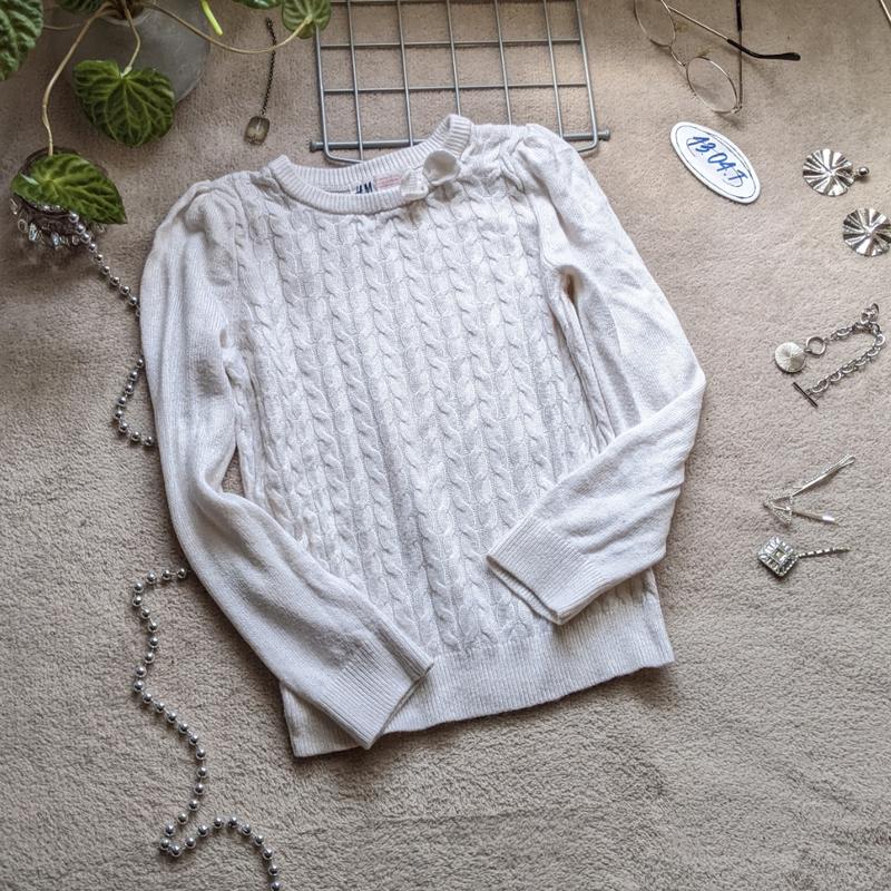 гарний білий светр в'язка косами фірма h&m 24 роки стан гарний без дефектів під руками 33-42 довжина рукава від плеча 43 довжина виробу по спинці 42 у складі 68 віскози 35 поліамід та 5 альпаки гарненький та приємний на дотик