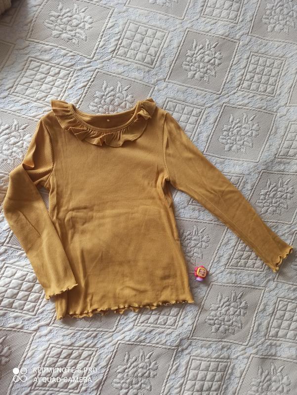 Размер ~ 5-6. Рост ~ 110-116. Одетая один раз. Тканина ~ 97% котон, 3% еластан. Замеры: длина ~ 40 ширина ~ 27 рукав (от плеча) ~ 39. Куплена комплектом (пудра, горчица, зеленая). К этим кофтинок еще есть лосины.