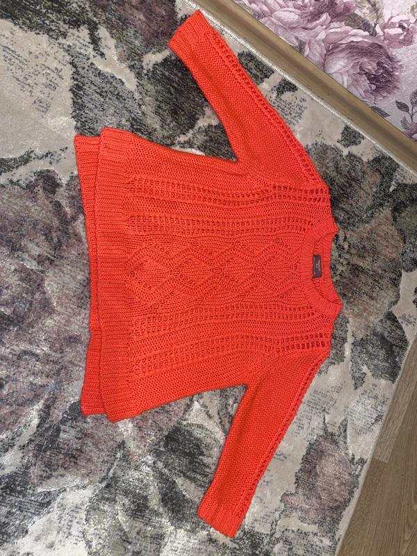 Кофточка в крупную в»ность, рукав 3/4, короткая, широкого кроя.Ярко яркого розового цвета.