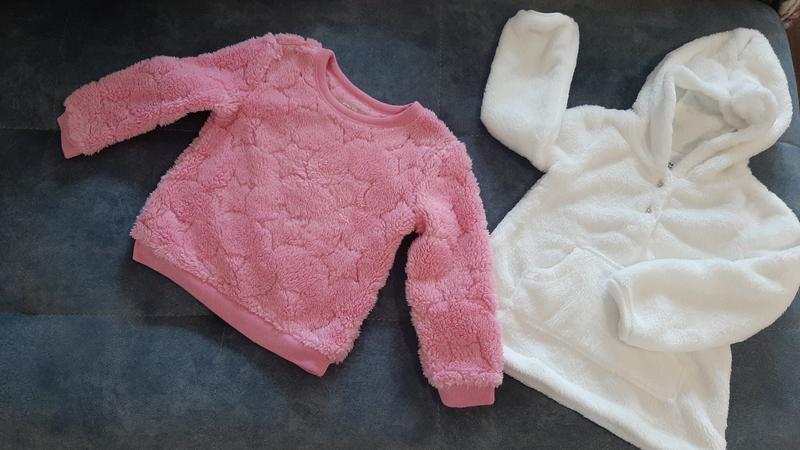 Новые плюшевые свитера на девочку розовый и белый (с капюшоном) размер 92