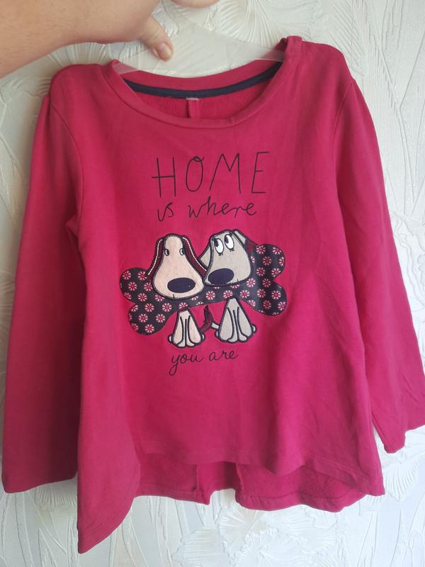 Свитер туника из плотного хлопка, спереди нашивка, сзади - бантик и под ним сборка. В идеальном состоянии. Привезён из Италии. Камера цвет не передает, более похож на последнем фото (насыщенный малиновый)