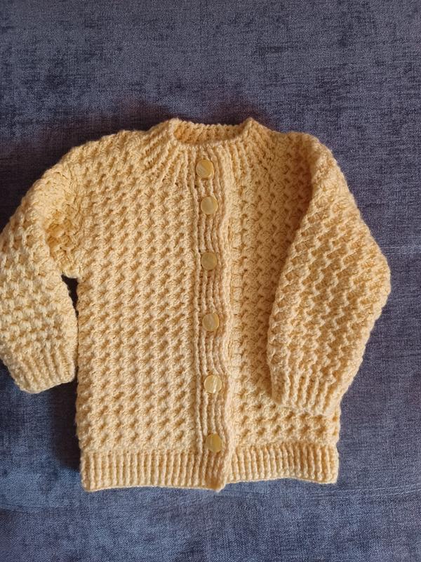 Ручная работа, лимонного цвета. Длина 31,5 см; рукав от воротника 35 см; пог 26 см.