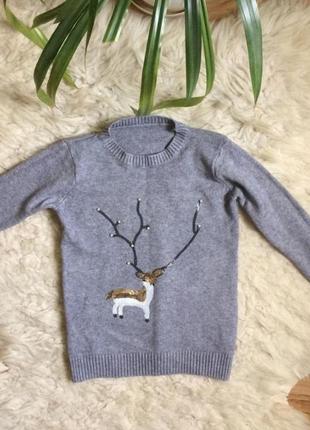 Подписывайтесь на мою страницу. Очень мягкий свитер. Приятный на ощупь. Без броков. Олень вышитый пайетками и отделанный жемчужинами))) Параметры: плечи 33 ПОГ 40 рукав 48 длина 53