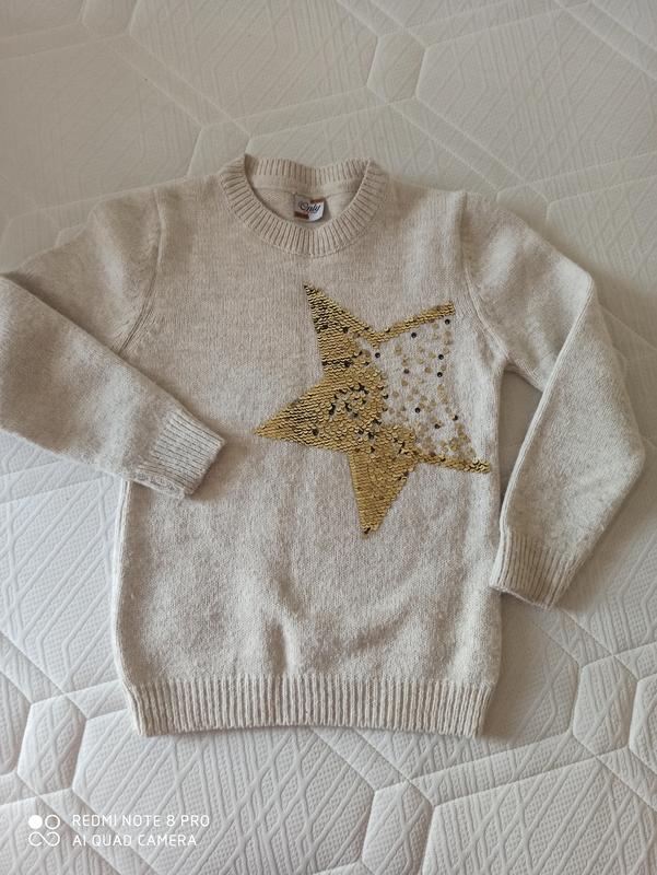 Продам світер з паєтками, які змінюють колір. Довжина по спинці 50 см, рував 46 см. Стан нового, майже не носили.