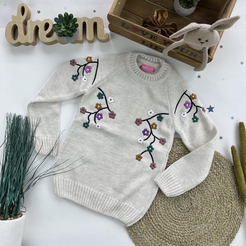 Свитер вязаный производства Турция с вышитыми цветами. Качество - отличное. Акрил! Не скатывается! Размер: 5-6 рукав от горловины 48 длина 49 7-8- 53/55си 9-10- 56/56см Цена: 435 грн