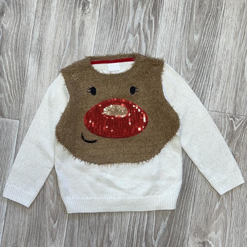 свитерок с пайетками 4-5 лет F&F длина 43. ПОГ 34, рукав 38.