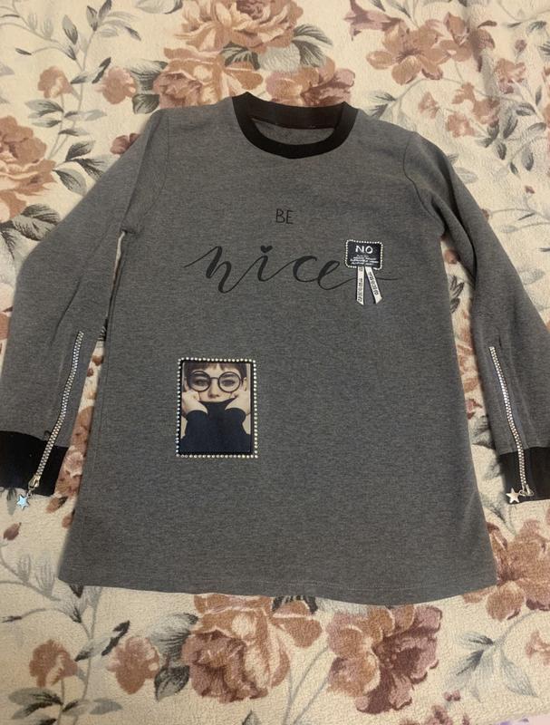 Серый теплый приятный на ощупь и к телу свитерок (можно как тунику на вырост). Змейка со звездочками оригинально смотрится. На какой размер, смотрите по замерам на фото. Состояние кофты отличное.