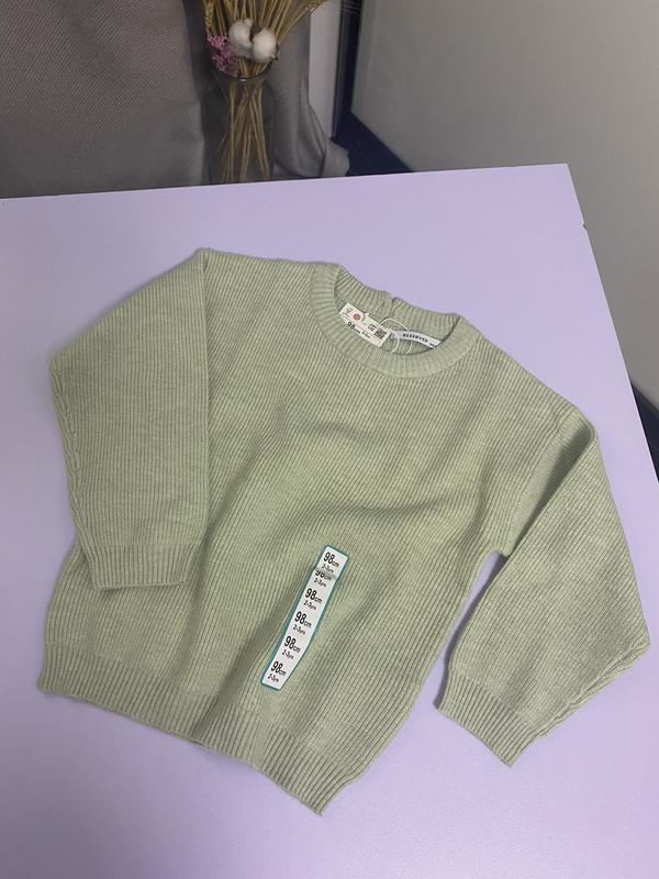 Мягкий свитерик зеленого цвета Состояние: новый Размер 2-3 года, 98 см Длина 37 см Ширина 30 см (свирик должен быть свободный) Рукав от шва 27 см