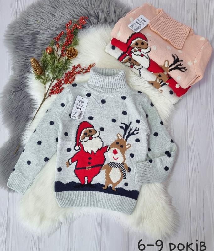 Новогодняя кофточка теплая и удобная ткань: 70 акрил, 30 шерсть двойная машинная вязка, красиво смотрится на ребенке КАЧЕСТВО ЧУДОВА ОДНОЗНАЧНО РЕКОМЕНДУЮ! 6-7(2 шт)-длина 45,рукав от плеча 42, пог 35 +-2 см