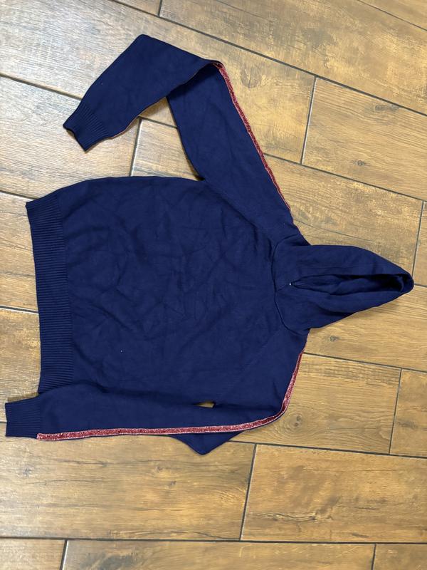 Кофта выполнена из вязаного трикотажа, рукав отделан розовым глиттером. Размер 152. Возраст 11-12 лет
