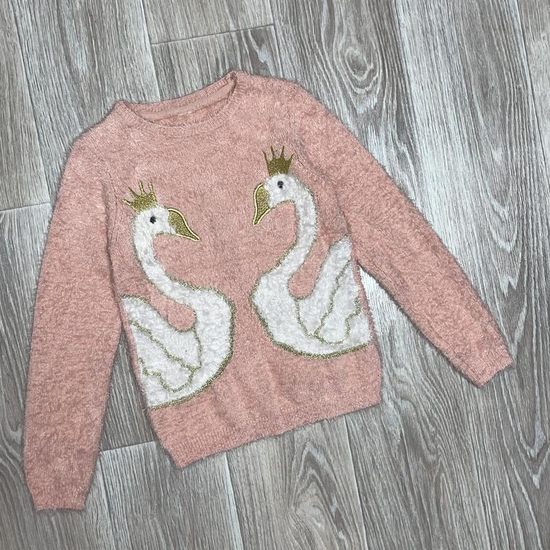 Свитер травка с лебедями Цвет розовый Состояние идеальное См.замеры Длина 47. Пог 34. Рукав 47-54