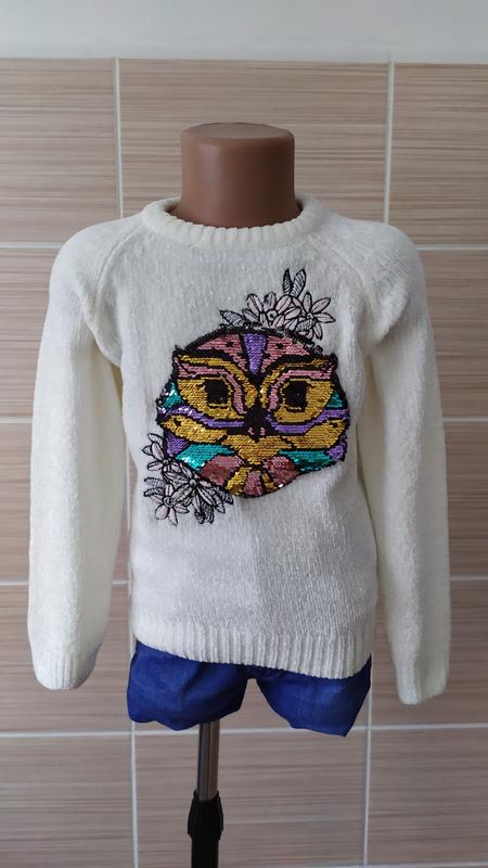Джемпер с аппликацией из пайеток состав ткани: 100% полиэстер в наличии размеры размер 116 на 5-6 лет размер 122 на 6-7 лет замеры размер 116 длина 41 см длина рукава от горловины 45 мм ширина в груди 29 см размер 122 длина 44 см длина рукава от горловины 52 см ширина в груди 31 см