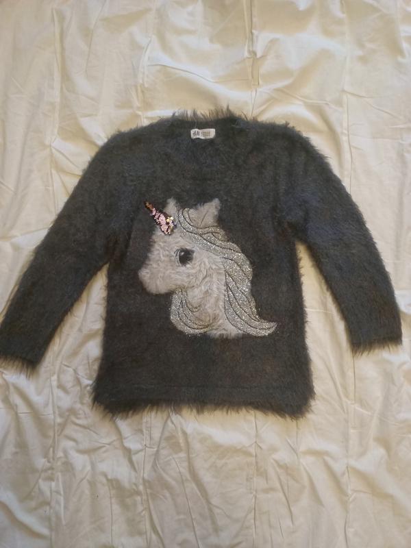Свитер в идеальном состоянии. Одягали пару раз лише. Длина 49 см, рукав 42 см плечо 8 см. на рост 122-128 см, на возраст 7-8 лет