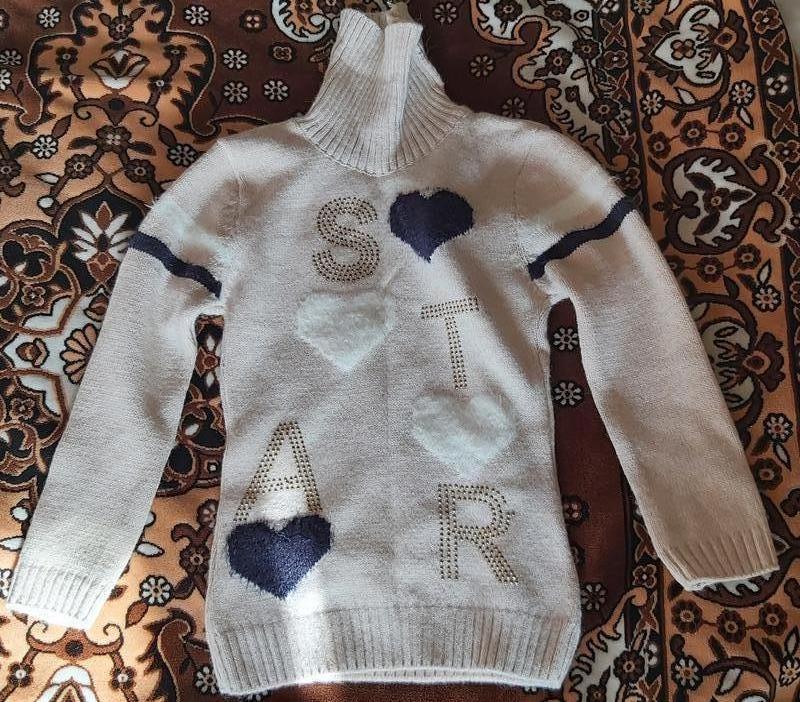 Новый теплый вязаный свитер дя девочки размер 122-128см, производитель - Турция. Очень мягкий и приятный к телу.