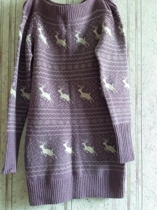 туніка бузкова, М, принт олені, в дуже хорошому стані, тепла, 30% вовна, 70акрил. плечі 39, рукав 72, ПОГ 42, довжина 77.