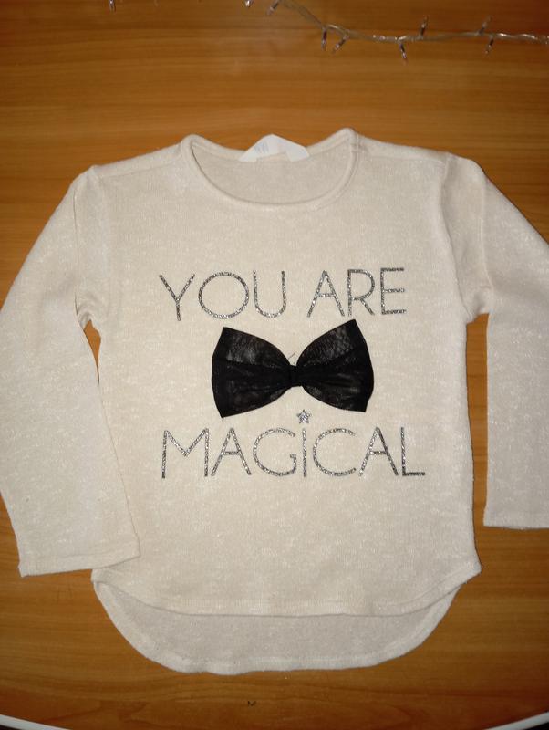 Тоненький ніжний джемпер светрик від H&M в розмірі 4-6 років. Заміри: довжина 44/39, плечі 29.5, рукав 42/34, ширина 32. Речі після моєї доні.