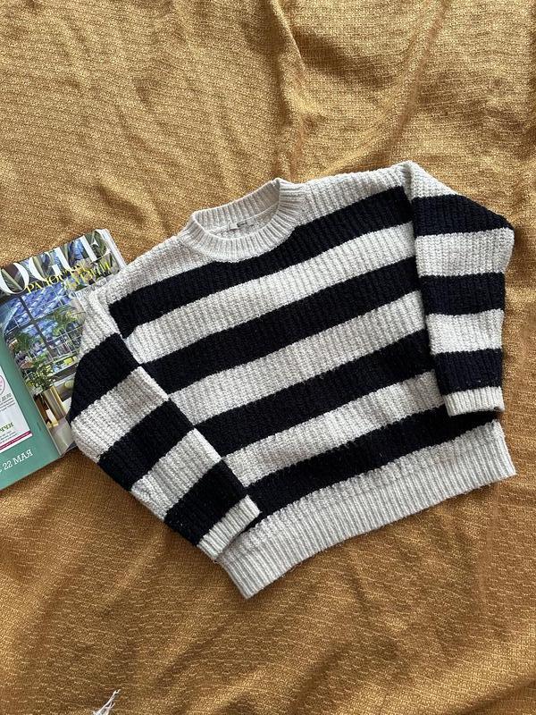 Теплый детский свитер в полоску/ Плетение заводскее/ Подойдет на 8-11роков ориентируйтесь по замерам/ Длина 53 см/ Плечи 54 см/ Рукав 46,5 см/ Пог 56 см/ Пот 56 см/ Знизу 47 см/ С нюансов-е катышек на фото указано/оцено дешевле/ Продается без возврата/